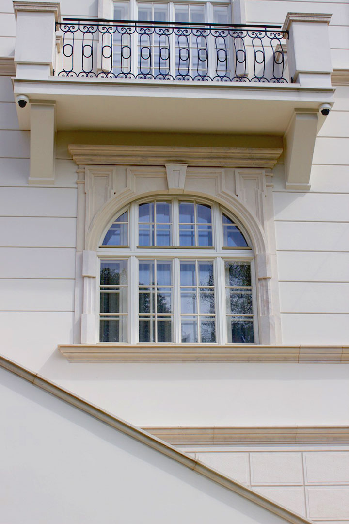 Für die Sanierung einer Gründerzeitvilla am Linnéplatz in Wien fertigte MAXX Raumelemente detailreiche Kunststeinelemente – darunter Laibungen, Friese, Gesimsbänder und Stürze. Der marmoriert eingefärbte Beton sorgt für eine authentische Anmutung und fügt sich harmonisch in das historische Erscheinungsbild ein.
