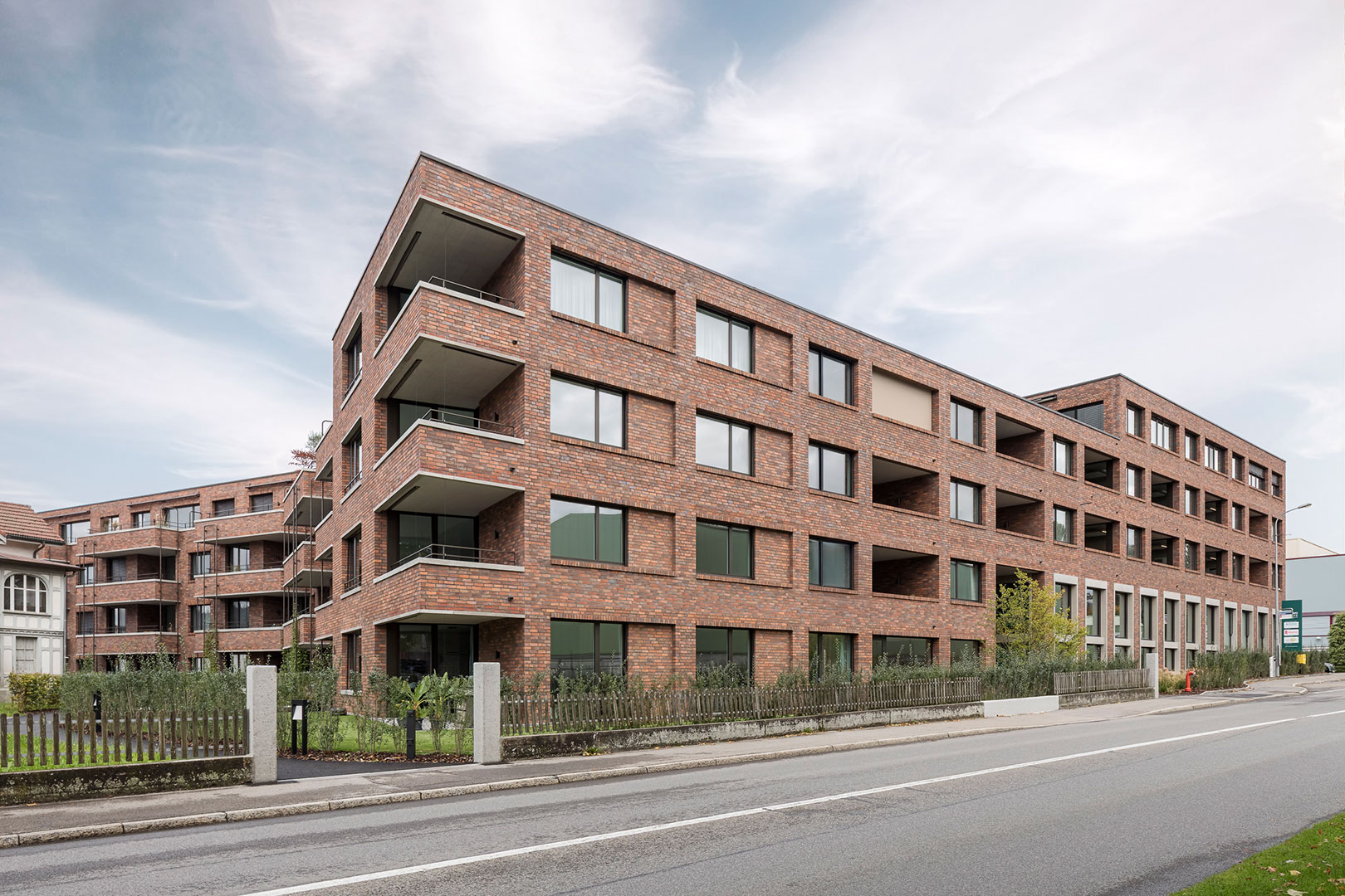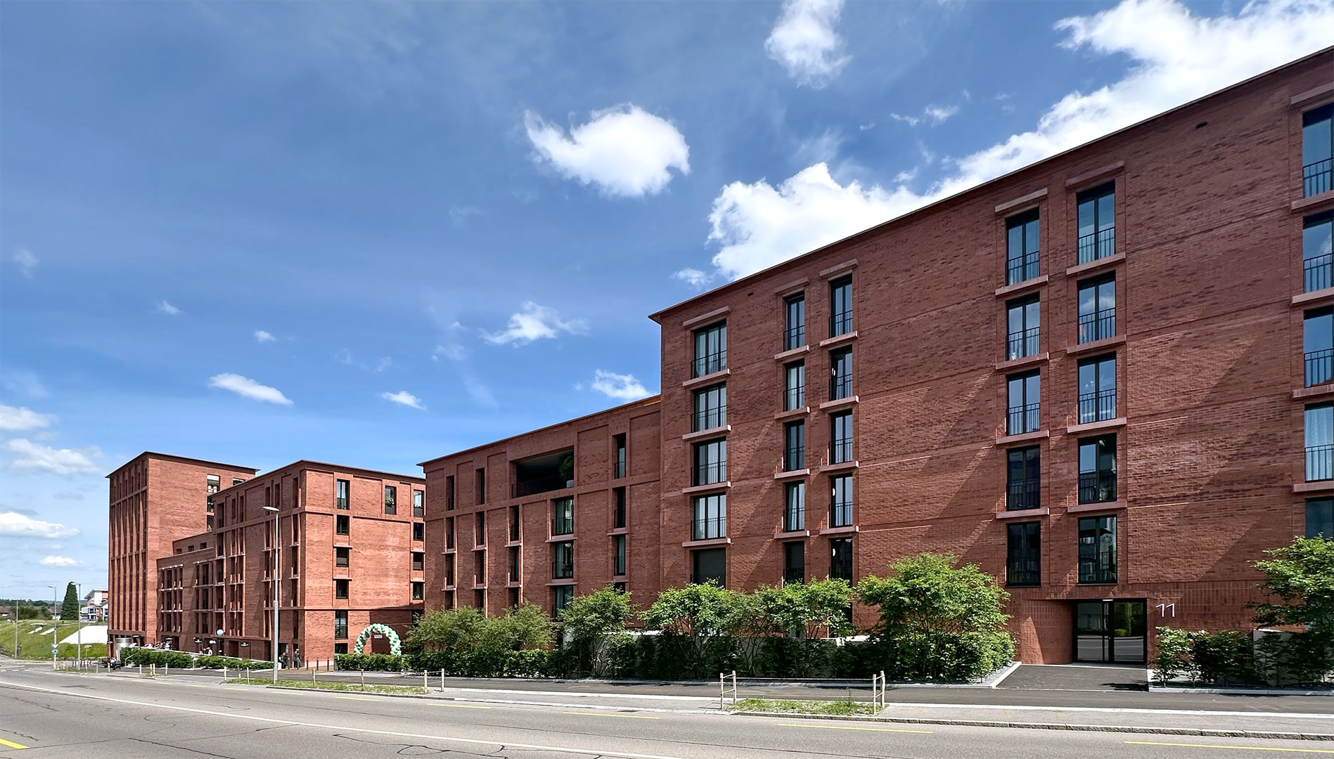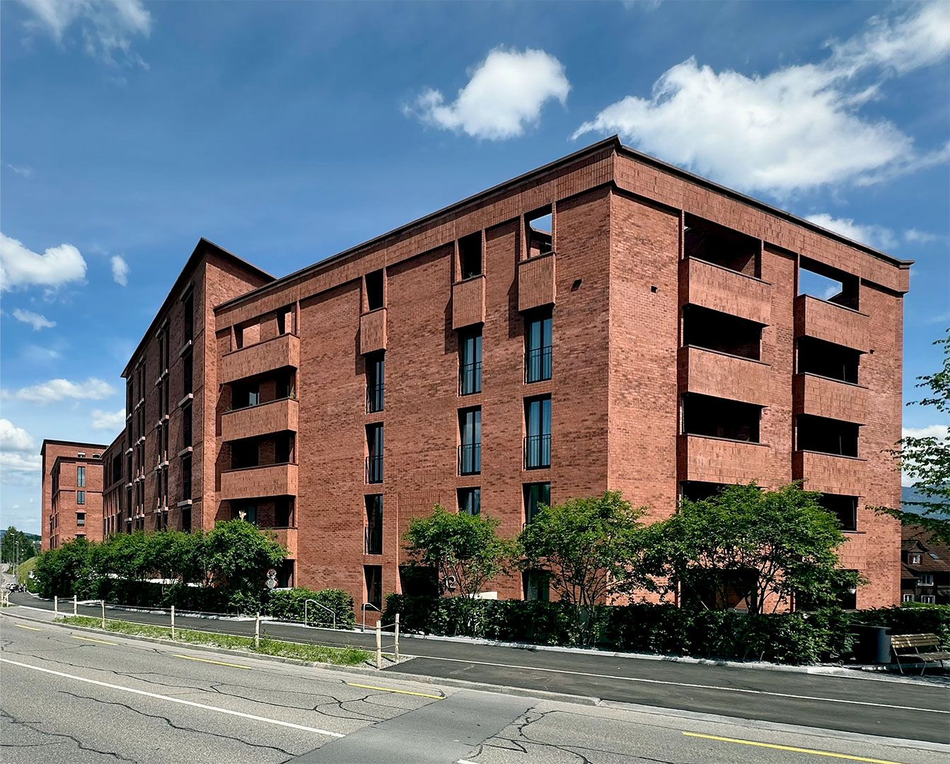 Die Architektur der Überbauung Chäsimatt in Rotkreuz verbindet moderne Neubauten mit aufwendig renovierten historischen Gebäuden und schafft mit 14 separaten Gebäuden ein lebendiges Quartier. Die Fassade der Neubauten ist von einer klaren Linienführung geprägt und unterstreicht damit den funktionalen und ästhetischen Charakter. Die Fertigteile mit Sichbeton- bzw. Klinkeroberfläche wie die Wandplatten, Brüstungen, Sockel, Stürze, Dachrandelemente und Vordächer erfüllen sowohl ästhetische als auch statische Anforderungen.
