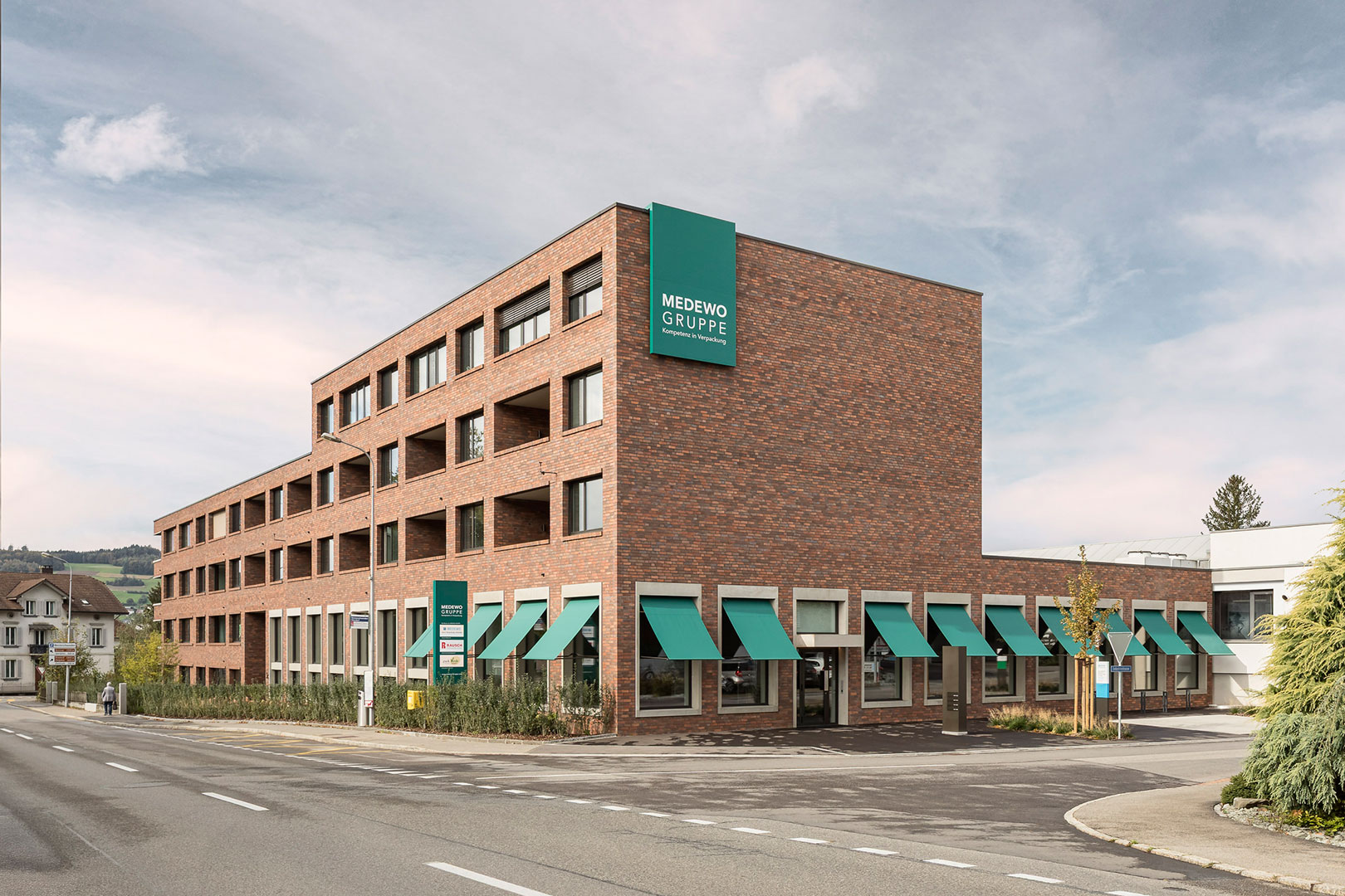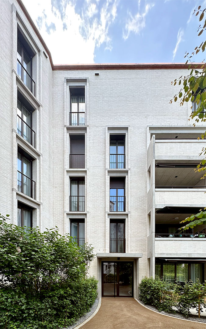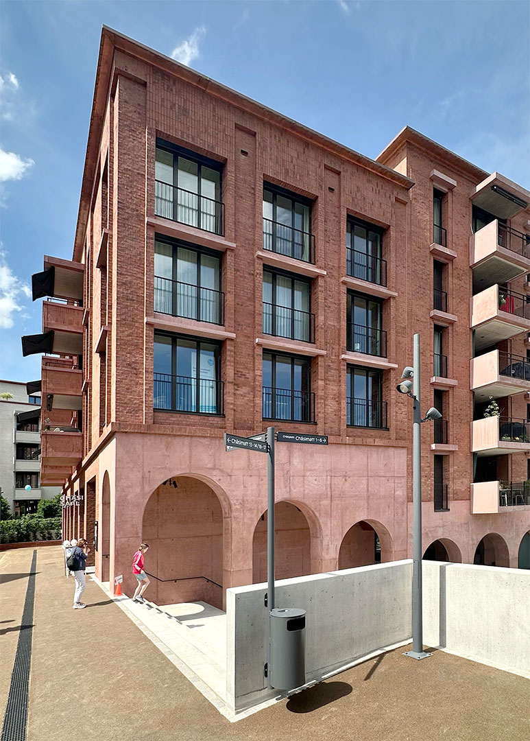 Die Architektur der Überbauung Chäsimatt in Rotkreuz verbindet moderne Neubauten mit aufwendig renovierten historischen Gebäuden und schafft mit 14 separaten Gebäuden ein lebendiges Quartier. Die Fassade der Neubauten ist von einer klaren Linienführung geprägt und unterstreicht damit den funktionalen und ästhetischen Charakter. Die Fertigteile mit Sichbeton- bzw. Klinkeroberfläche wie die Wandplatten, Brüstungen, Sockel, Stürze, Dachrandelemente und Vordächer erfüllen sowohl ästhetische als auch statische Anforderungen.